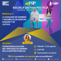 La Escuela de Gestión Política, Fundación Friedrich Ebert-Perú y la Red Mujer Rural los invita a participar del desarrollo: Módulo 4 Sesión 4 Tema: Transversalización del enfoque de género en la…