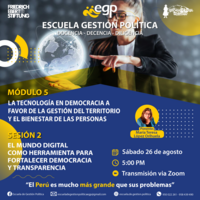 La Escuela de Gestión Política, Fundación Friedrich Ebert-Perú y la Red Mujer Rural los invita a participar del desarrollo: Módulo 5 Sesión 2 Tema: El mundo digital como herramienta para…